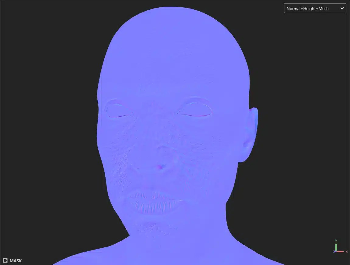 The lip wrinkles and their variation as they are not painted in symmetry. The exaggerated normal’s that allow adjustment in direct relation to the lighting and the rendering engine. The SSS and the custom painted weights that were done separately in their respective modes that allow a clean export, and the fact that the maps will be well named.